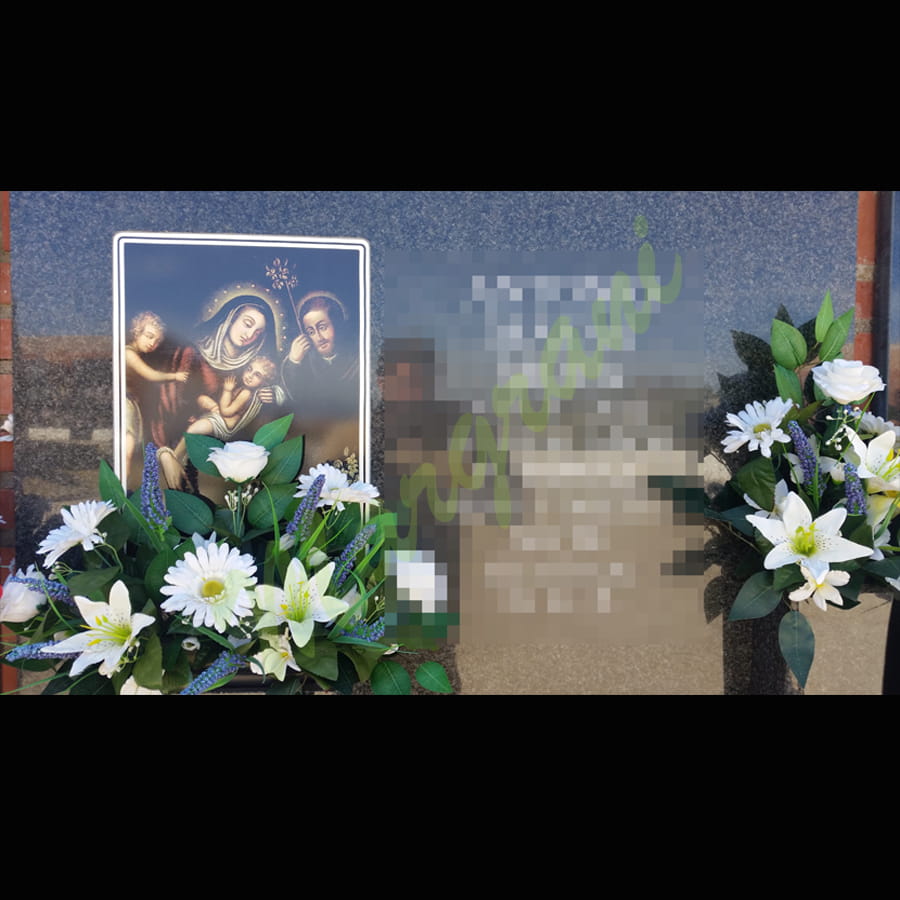 Se trata de ‘vaciar’ la lápida de granito con un hueco cuadrado, ovalado o con la silueta que se desee y ‘pegar’ en su interior una pieza igual de cerámica ‘estampada’ con una foto o dibujo generalmente a color.